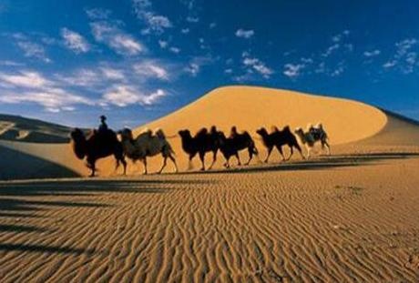 早乘车赴敦煌参观沙漠奇观——【鸣沙山-月牙泉】(参观5小时),骑骆驼欣赏沙泉相依、沙不掩泉、泉不枯竭的神奇美景,或滑沙、或跳伞韵味无穷。中餐后自由活动后送火车赴兰州(参考车次:K9669 18:46-09:15/Y669 20:07-07:22)。