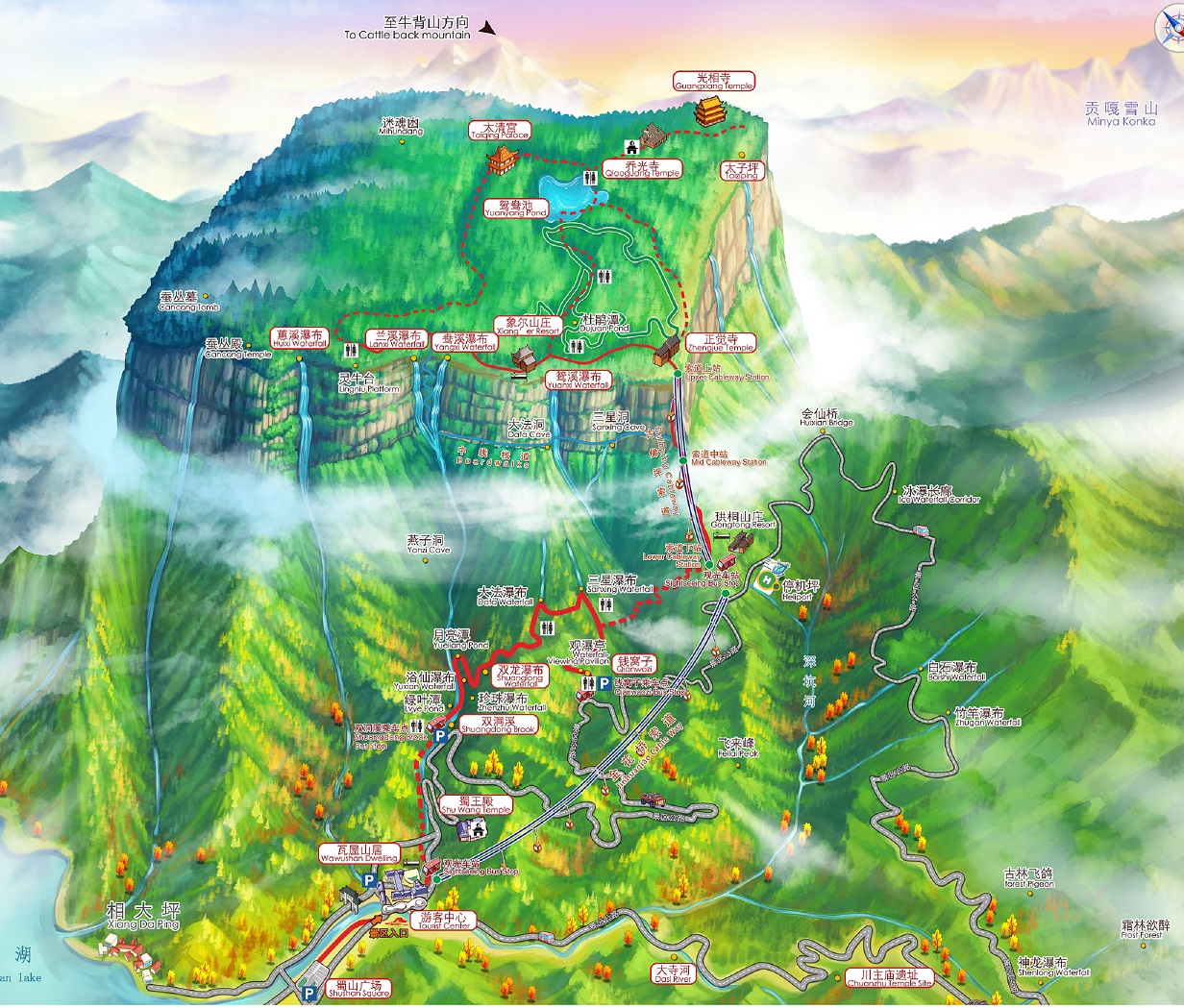西岭雪山景区旅游地图 西岭雪山导游图 西岭雪山旅游路线